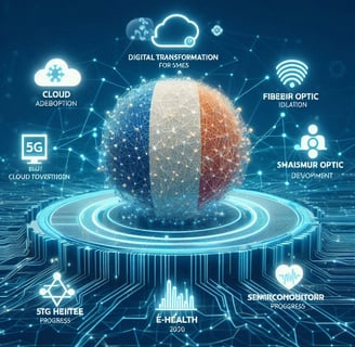 Bien que la France soit en tĂȘte pour le dĂ©ploiement de la fibre optique et lâe-santĂ©, des dĂ©fis subsistent, notamment pour la transformation numĂ©rique des PME et lâadoption de technologies comme lâIA et le cloud.
